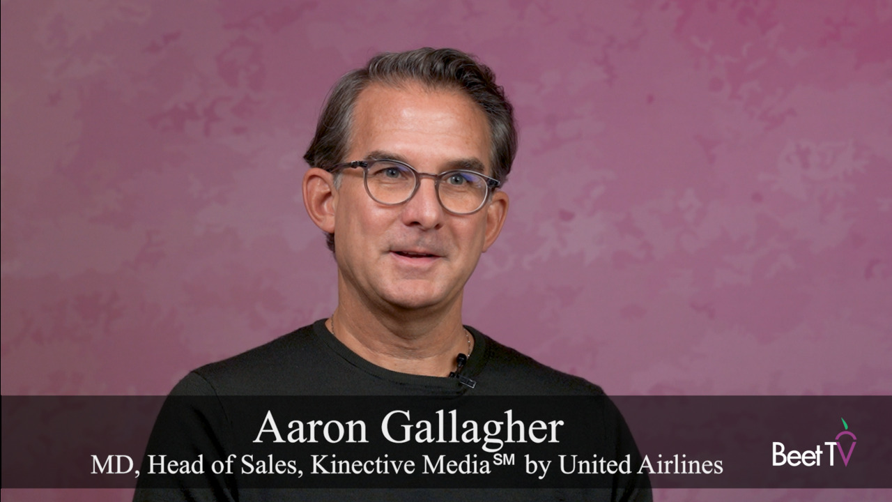 “They’re just in a very different mindset than their average day-to-day,” said Aaron Gallagher, managing director and head of sales at Kinective Media by United Airlines, in this video interview with Beet.TV. “It’s incredibly valuable to be able to reach this consumer throughout the entire travel journey when they’re in this mindset of attention and focus.”